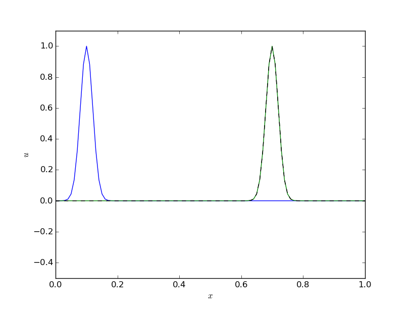 L, c, Nx, T, C = 1.0, 1.0, 100, 1.0, 0.8