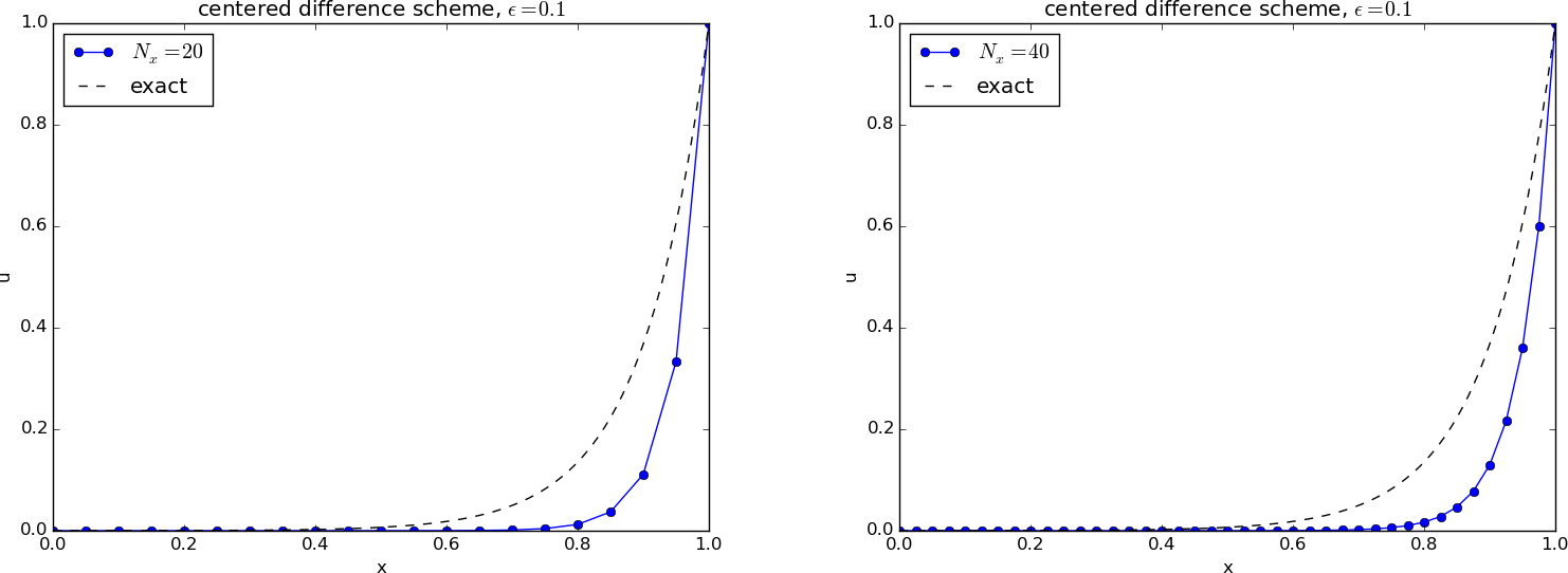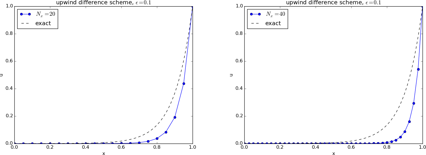 \[\begin{align} u(i\Delta x, (n+1)\Delta t) &= I(i\Delta x - v(n+1)\Delta t) \nonumber \\ &= I((i-1)\Delta x - vn\Delta t - v\Delta t + \Delta x) \nonumber \\ &= I((i-1)\Delta x - vn\Delta t) \nonumber \\ &= u((i-1)\Delta x, n\Delta t), \nonumber \end{align}\] provided \(v = \Delta x/\Delta t\). So, whenever we see a scheme that collapses to \[ u^{n+1}**i = u**{i-1}^n, \tag{4.6}\] for the PDE in question, we have in fact a scheme that reproduces the analytical solution, and many of the schemes to be presented possess this nice property!
