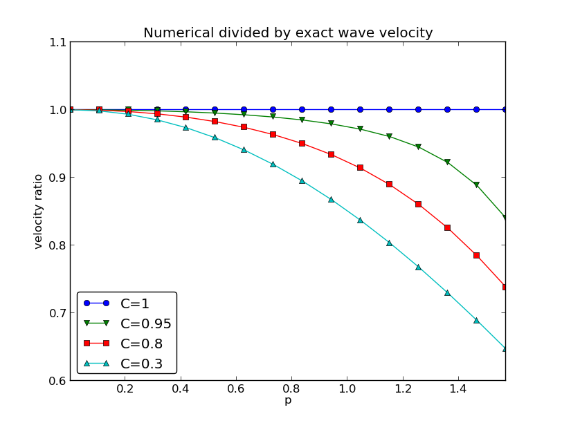 # For C > 1, the scheme is unstable and energy grows exponentially2.105.9 Exercise 9: Numerical Dispersion