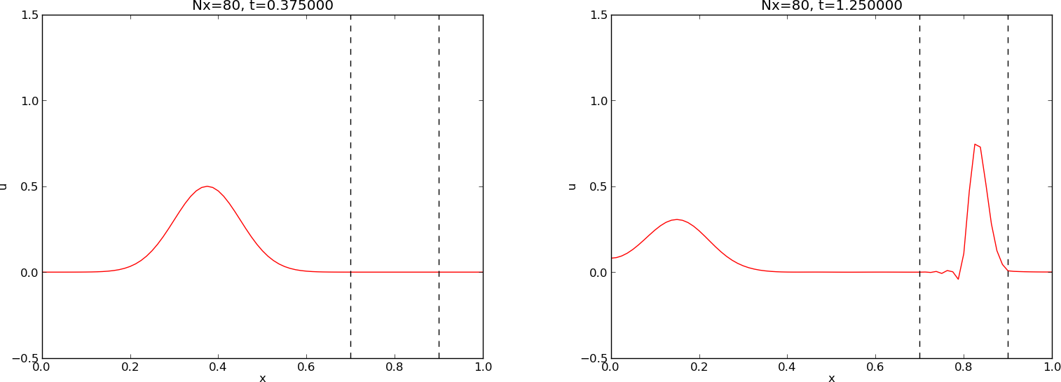 - set \(u^{n+1}_i=0\) for the boundary points having \(i=0\), \(i=N_x\).